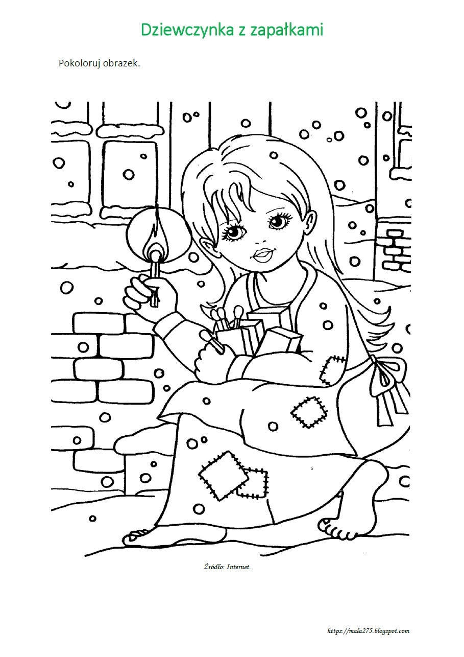 Dziewczynka Z Zapałkami Kolorowanka Do Druku