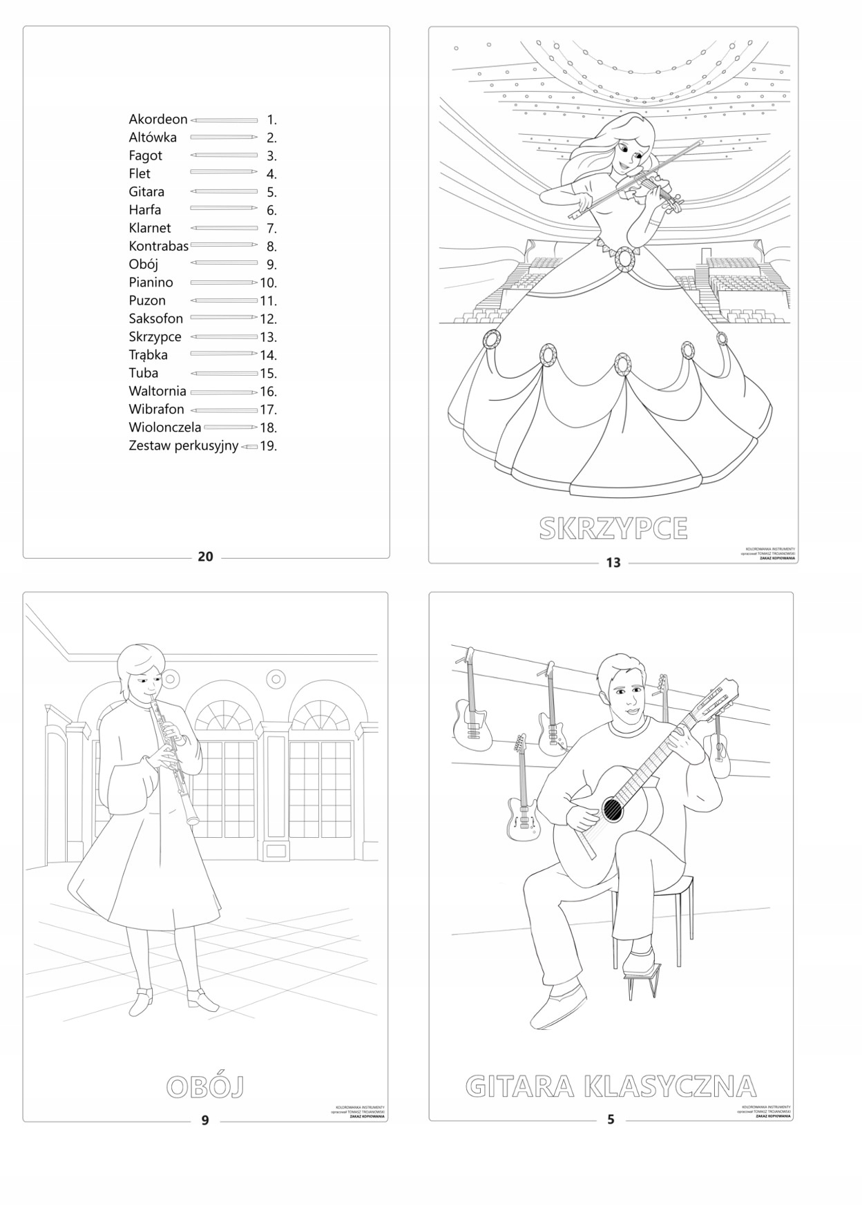 Kolorowanka Instrumenty Najpopularniejsze Instrumenty Muzyczne Do Kolorowania Alenuty Pl Ksiegarnia Muzyczna